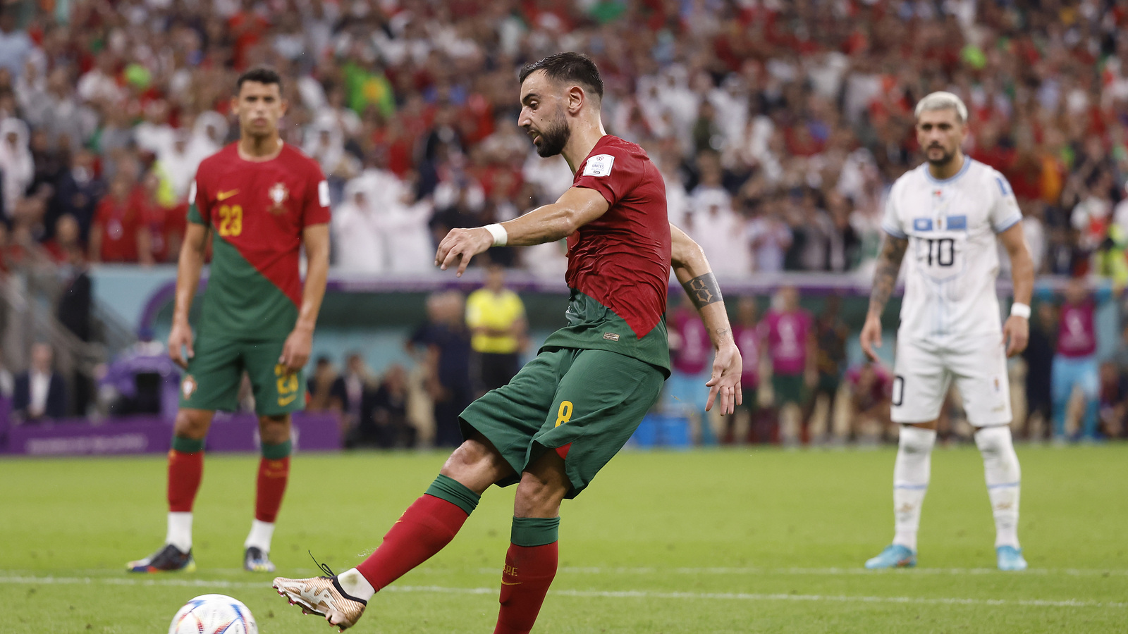 Goals from Bryan Mbeumo and Bruno Fernandes help Manchester United to a 2-0 win over 10-man Tottenham, who saw captain Cristian Romero sent off for the second time this season in the Premier League.