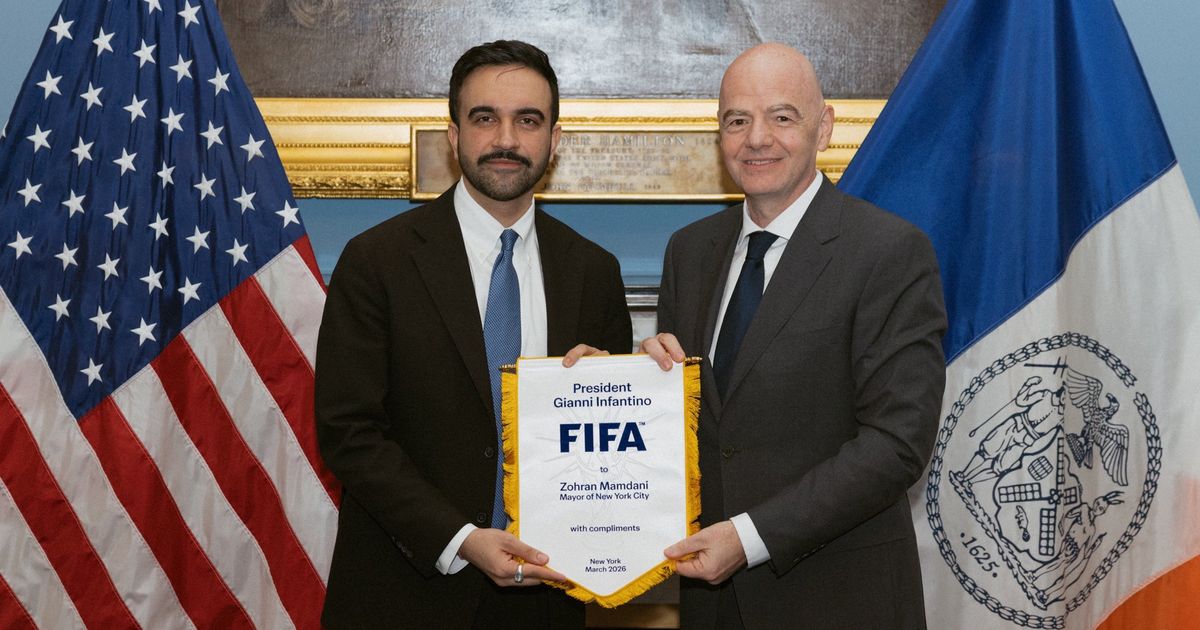 The mayor has held back his trademark grin in photos with the president of the United States and now with the president of FIFA.